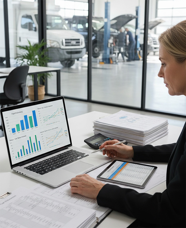 Każdy pojazd w firmie generuje określone wydatki, dlatego Fleet4Less stale analizuje i monitoruje koszty serwisowe. Kontrolujemy wydatki na części eksploatacyjne, naprawy czy przeglądy, a następnie wskazujemy obszary, w których możliwe jest obniżenie kosztów. Transparentne raporty pozwalają zarządowi lepiej planować budżet i podejmować świadome decyzje. Zarządzanie kosztami serwisowymi to realna oszczędność, która przekłada się na wyższą rentowność całej floty.